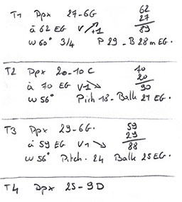 Nous pouvons lire, sur le carnet ci-contre, que le fairway commence à 207 m et se termine à 231 m dans l'axe du point rouge.